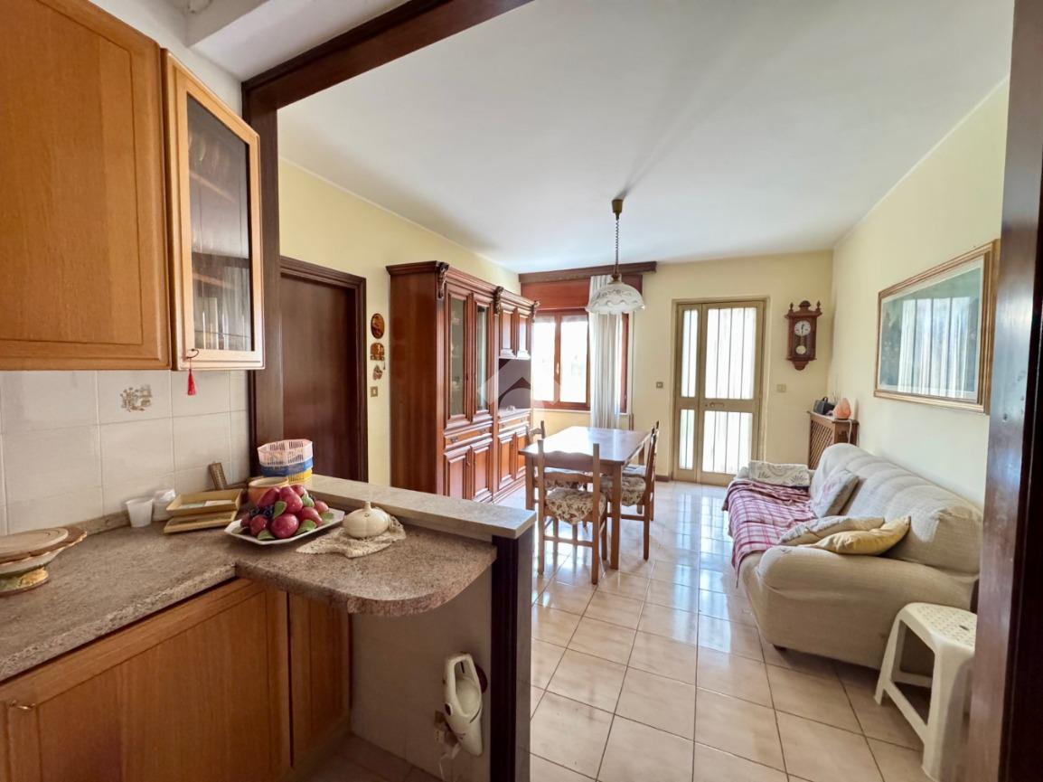 Internamente l'appartamento si compone di doppio ingresso, living con soggiorno e cucinotto, bagno finestrato, rispostiglio, mentre la zona notte presenta camera matrimoniale e seconda camera.