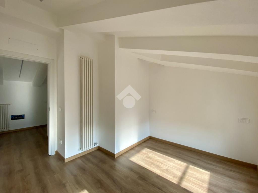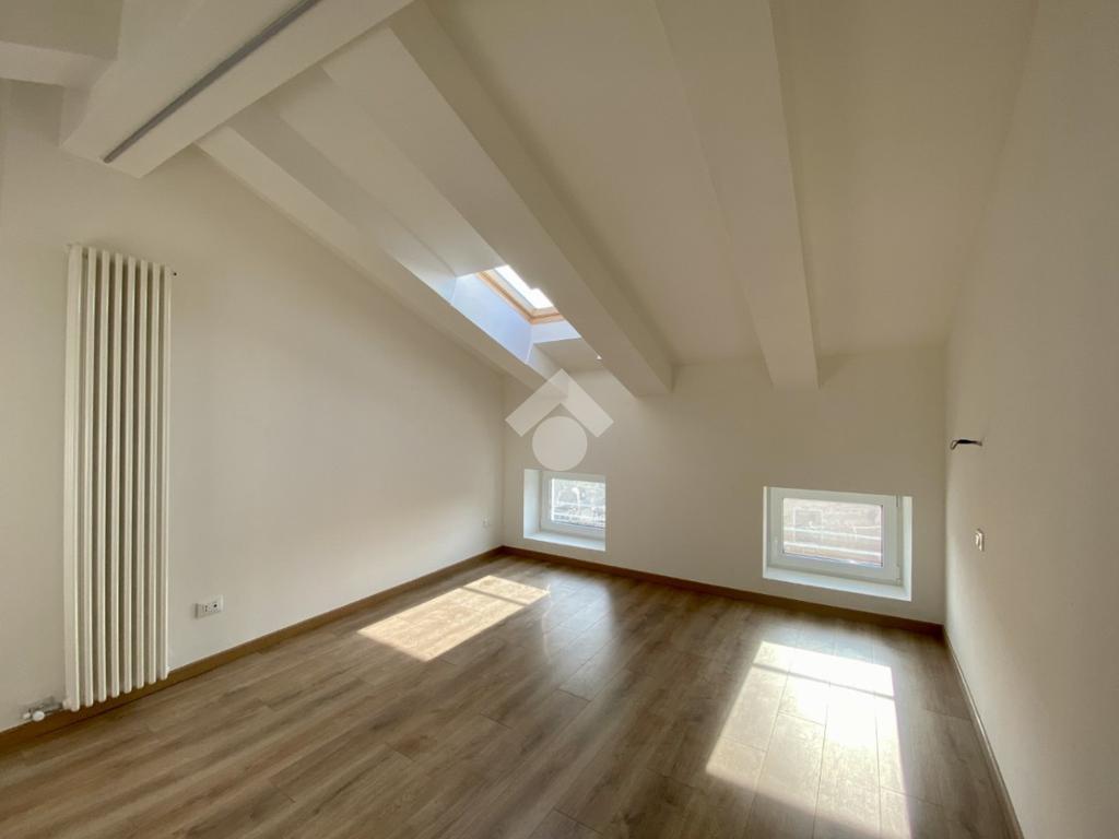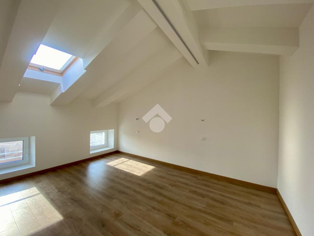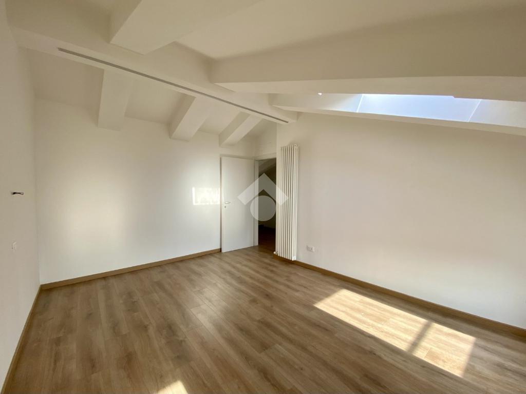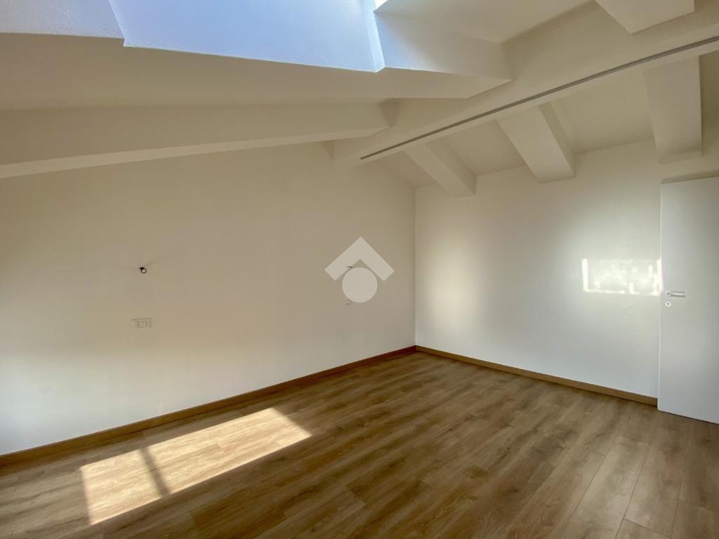 Sempre sul piano, un pratico antibagno separa la zona lavanderia (con caldaia e attacchi lavatrice) da un bagno finestrato dal design contemporaneo, completo di doccia walk-in, sanitari sospesi e raffinate finiture in gres effetto marmo. A servizio del bagno, un secondo terrazzo.