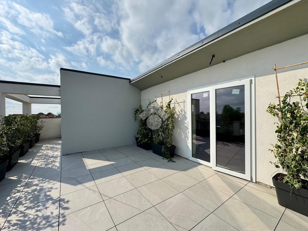 La soluzione in oggetto è un appartamento quadrilocale con ingresso indipendente, sviluppato su due livelli, composto al piano primo dal living di 44 mq, con accesso diretto ai due terrazzi, due ampi bagni finestrati, zona notte con camera matrimoniale di 16 mq, camera doppia di 12 mq e camera singola di 9 mq.